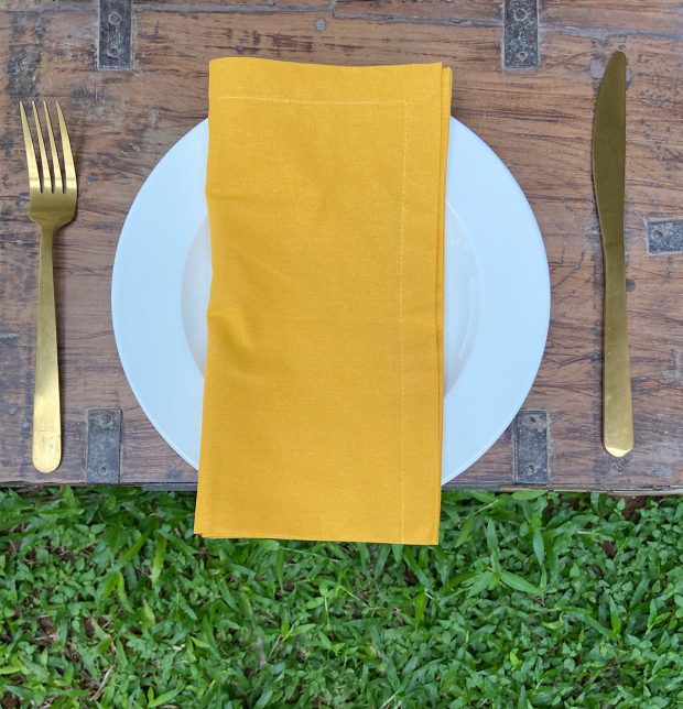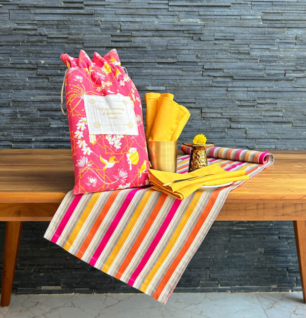 Vibrant Satin Stripes Table Runner & Yellow Napkin Set – Gift Bag